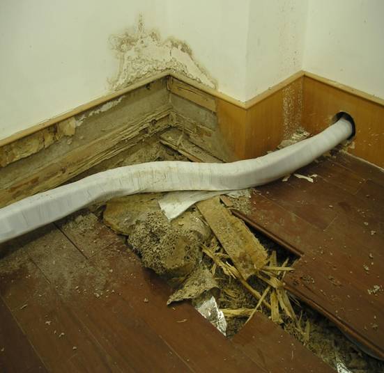 2、“蔓延”:白蟻為了取食,從地下土壤或沿著建筑物孔隙、管道等構筑“蟻路”進入建筑物實施危害。